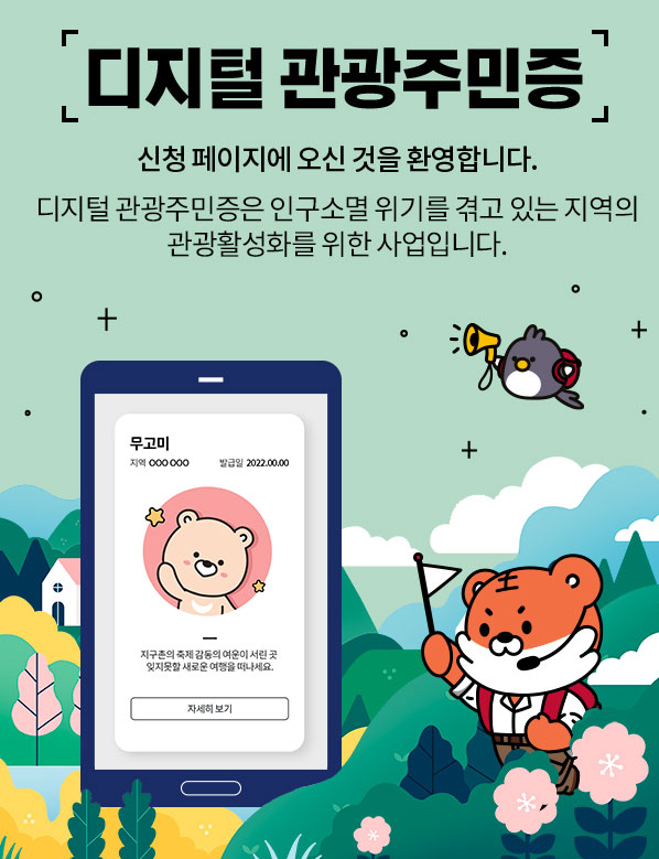 지방에 인구소멸 위기를 겪고 있는 지역에 관광 활성화를 위한 사업으로 디지털관광주민증을 시행하고 있습니다.
