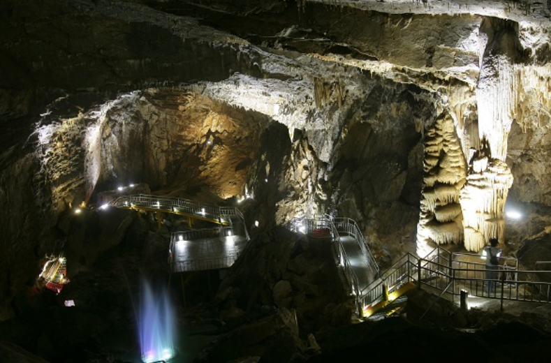 황금박쥐는 진한 오렌지색을 띠고 있으며 멸종위기 야생생물 1급과 천연기념물로 지정된 희귀종입니다 동굴의 길이는. 1,510m이고 이중 810m만 관람 구간으로 개방하고 나머지는 보존 지역으로 보호 중입니다. 천장에 매달린 대형 종유석, 바닥에서 솟은 석순, 종유석과 석순이 기둥으로 연결된 석주 등 기이한 동굴 생성물을 볼 수 있고, 천장에 깊은 도랑을 형성한 천장 용식구는 한국에서 가장 큰 규모를 자랑합니다. 또한 동굴 옆의 자연학습체험공원을 함께 있어 가족과 함께 둘러보면 더욱 재미있게 즐길 수 있습니다.