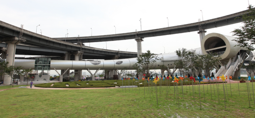 뚝섬한강공원에는 몸은 가늘고 긴 원통형인 ''자벌레'' 형태의 길이 243m 규모의 예술과 휴식이 함께하는 복합 전망문화콤플렉스가 뚝섬유원지역에서 연결되어 있어 누구나 이곳을 통해 편리하게 공원으로 진입할 수 있으며 ''자벌레'' 통로에는 카페, 찻집, 기프트숍은 물론 미디어아트 작가들의 작품전시 감상을 할 수 있습니다.