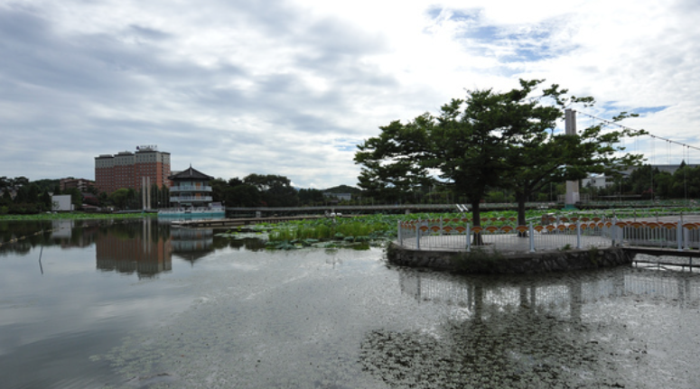 그윽히 풍기는 연못중앙으로 아치형 현수교를 거닐면서 한없는 시정에 젖어볼 수 있습니다. 1998년부터 재개장한 공원의 특색은 마운딩 시공으로 향촌의 작은 숲(언덕)을 연상케 하고, 전통 정자와 창포늪을 조성하여 역사성을 극대화하였고 또한 인공폭포와 목교를 설치하여 자연친화시설로 시민의 정서에 맞도록 조성하였으며 단오절에는 연못물로 부녀자들이 아침 일찍 머리를 감고 한해 건강을 기원하는 단오 창포물 잔치로도 유명합니다.